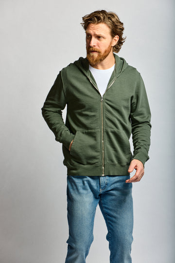 Easy Mondays Slub Cotton Zip Hoodie Thyme