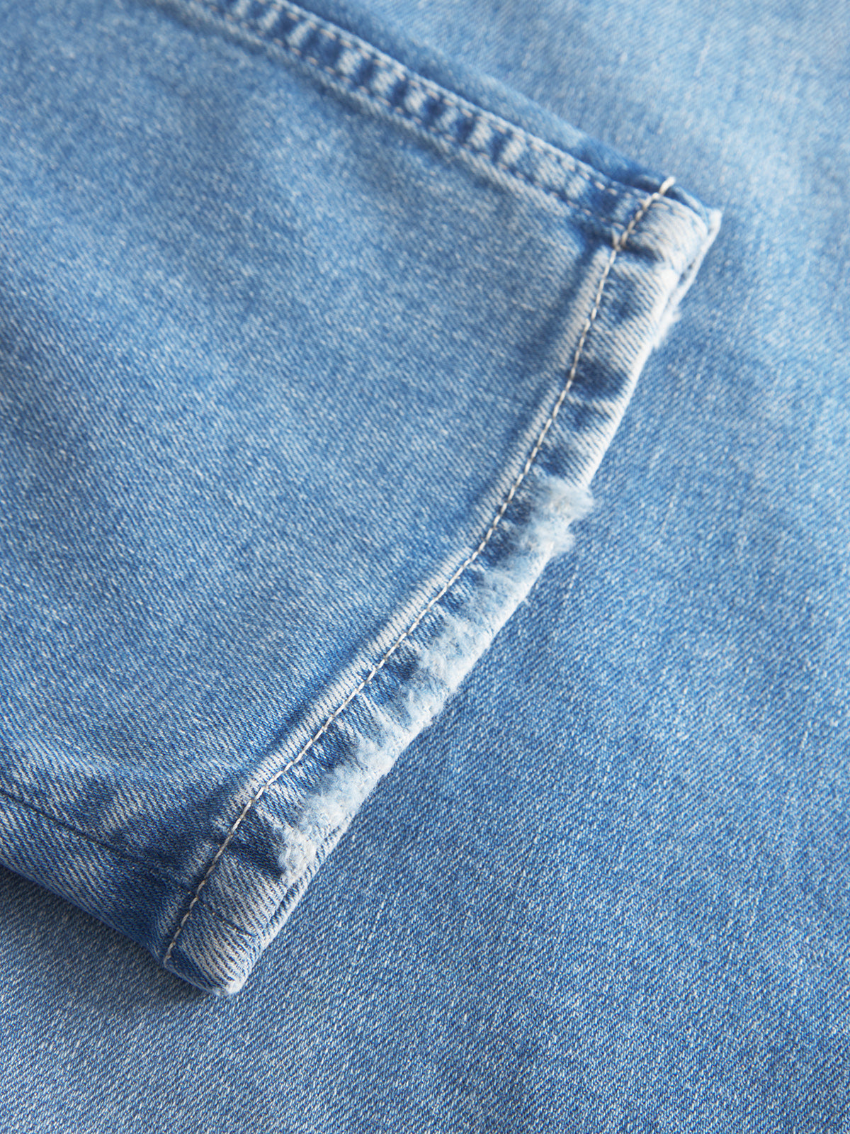 Mid blue denim with distressed details